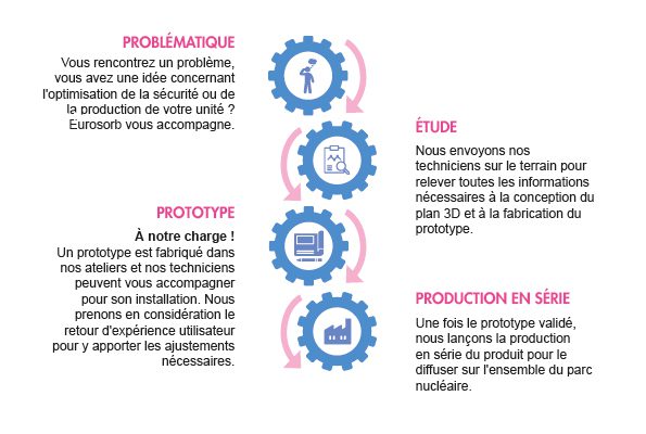 Dans le cadre de la gestion des risques FME, Eurosorb a développé son offre pour les produits traitant de la sécurité dans le nucléaire, notamment les obturateurs sur-mesure. Ceux-ci se révèlent particulièrement utiles dans le cadre des périodes d’arrêt de tranche. En effet, c’est surtout durant les travaux d’entretien que les obturateurs permettent de boucher temporairement un trou, une canalisation. Ils évitent ainsi toute chute d’objet à l’intérieur de la machinerie et par conséquent des coûts de réparation souvent faramineux pour la centrale.