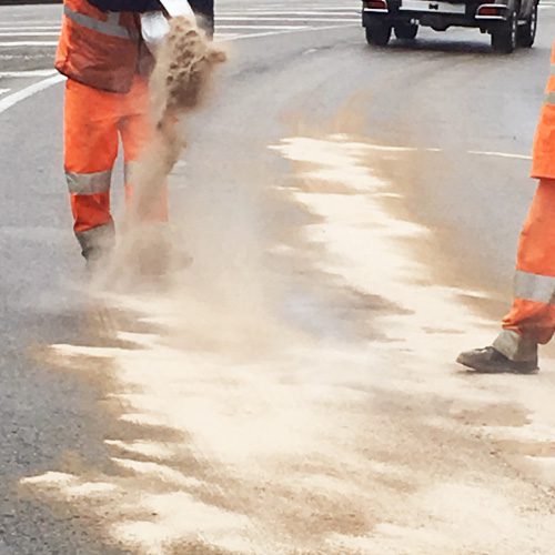 Les services en charge du nettoyage de la chaussée disposent de granulés absorbants.