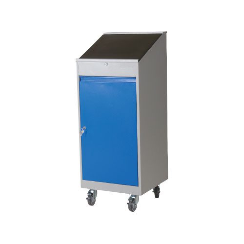 La porte et le pupitre sont verrouillables avec serrures à cylindres. Laquée poudre pour un fini résistant de grande qualité.