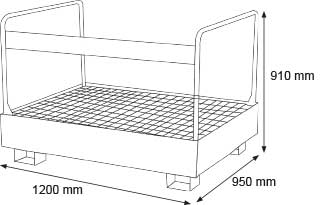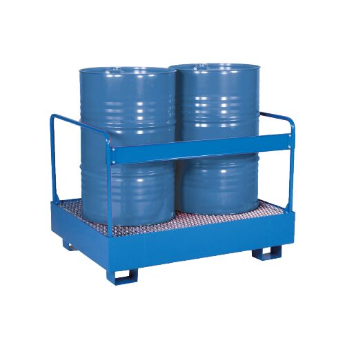 Bac de rétention en acier avec cadre de protection pour 2 fûts.