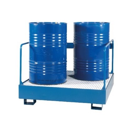 Bac de rétention en acier avec cadre de protection, pour 2 fûts.