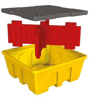 Toujours utiliser la palette de rétention avec caillebotis et supports en place.