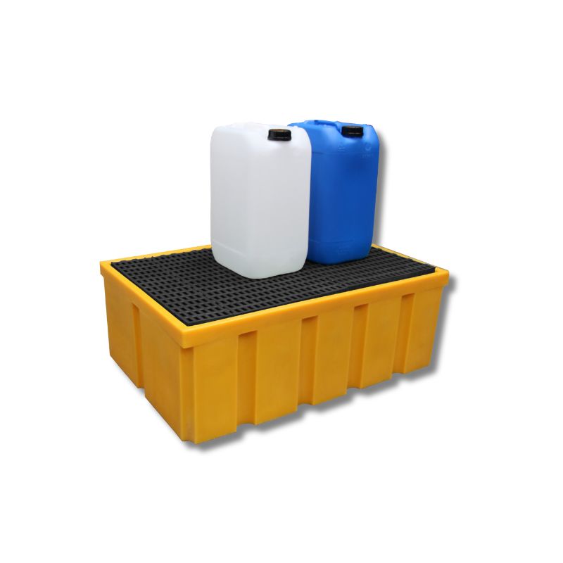 Bac de rétention PE jaune pour petits contenants (bidons, petits fûts, jerrycans…).