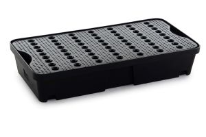 Bac de rétention PE vert pour petits contenants (bidons, petits fûts, jerrycans…).