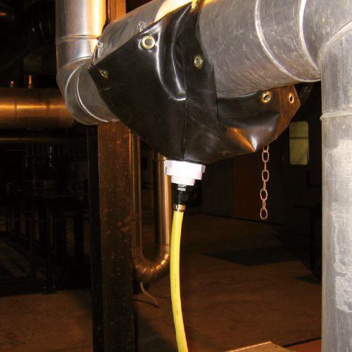Raccord du tuyau situé au centre de la toile pour connecter le conduit de sortie :