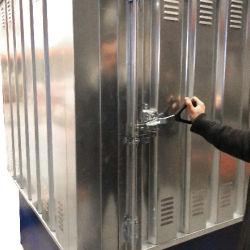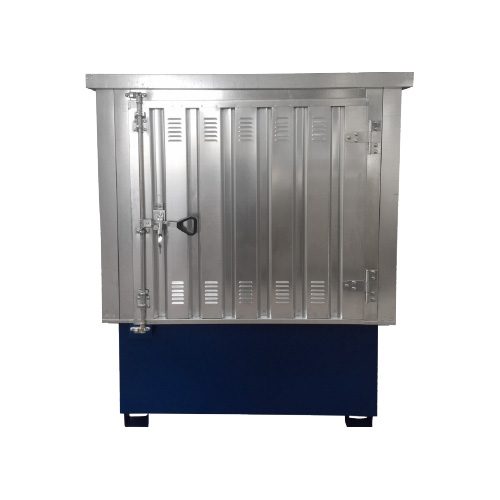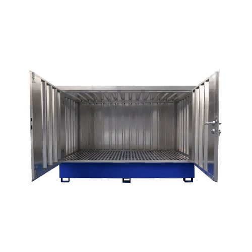 Box en acier galvanisé, finition peinture époxy de couleur bleue sur la partie bac de rétention. Ils sont utilisés pour un usage intensif et un entreposage en intérieur.