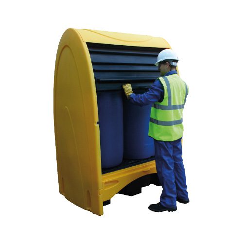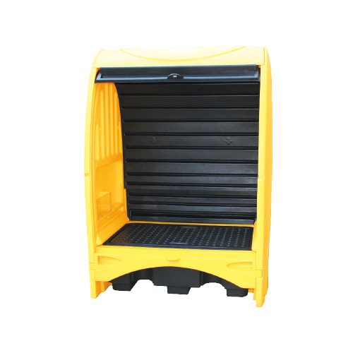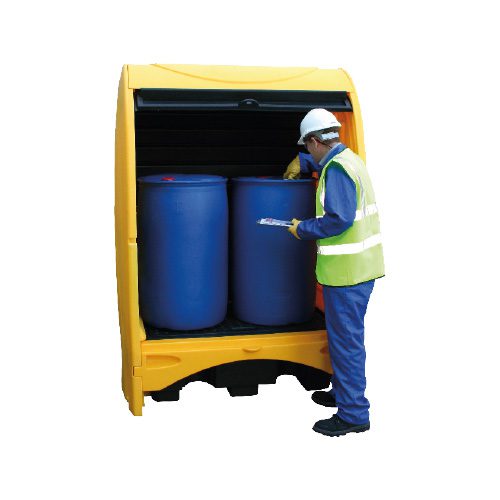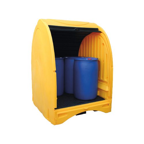 Box de stockage en polyéthylène rigide double paroi, résistant aux éléments chimiques et à la corrosion.Il permet le stockage et le soutirage de produits chimiques, ou la collecte de déchets dangereux.