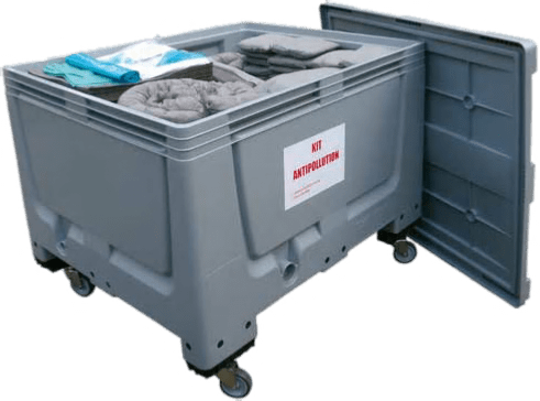 | Composition | • 1 caisse-palette P.E 535 litres avec couvercle (Dim. L 1200 x l 800 x h 790 mm) • 100 feuilles (C)* ou 200 feuilles (NT)* 40 x 50 cm • 1 rouleau 44 m x 48 cm • 12 boudins Ø 8 x 120 cm • 30 coussins 20 x 20 cm • 1 combinaison en Tyvek • 1 paire de gants de protection • 1 paire de lunettes protectrices • 10 essuyeurs • 10 sacs de récupération • 1 notice d’utilisation | ||