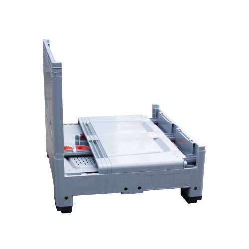 La caisse-palette pliable à parois pleines se distingue par ses parois gagne place, qui peuvent se rabattre lorsque la caisse est vide. Vous exploitez ainsi vos volumes de transport et de stockage au mieux de leur capacité, aussi bien en charge qu’à vide.