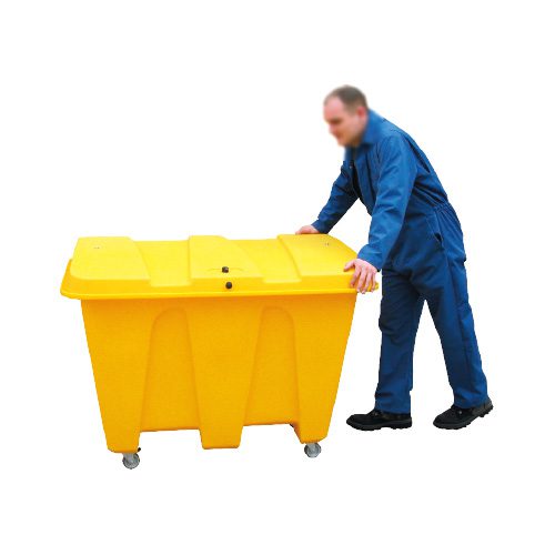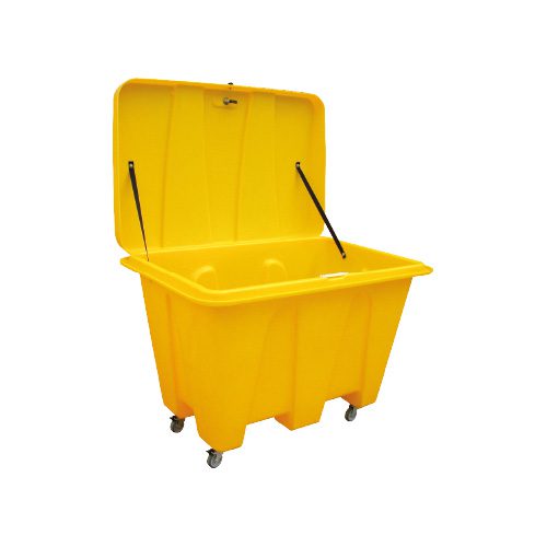 Coffre de rangement à roulettes 500 litres pour le stockage de sable et sel, d’équipement chimique et de matériel d’essuyage, outils de jardin etc.
