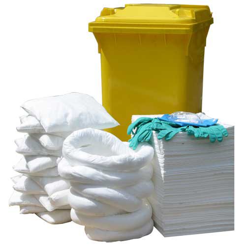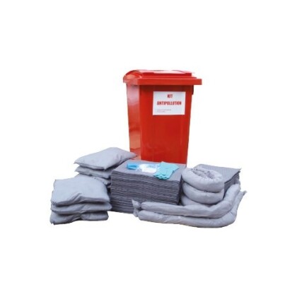 | Composition | • 1 conteneur P.E avec roulettes 360 litres (Dim. L 620 x l 580 x h 1090 mm) • 200 feuilles (C)* ou 400 feuilles (NT)* 40 x 50 cm • 12 coussins 40 x 40 cm • 12 boudins Ø 8 x 120 cm • 4 boudins Ø 8 x 300 cm • 3 paires de gants de protection • 3 paires de lunettes protectrices • 6 sacs de récupération • 1 notice d’utilisation | ||