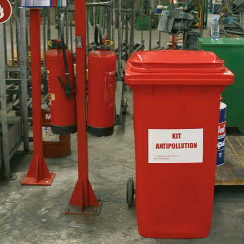 | Composition | • 1 conteneur P.E avec roulettes 120 litres (Dim. L485 x l 550 x h 980 mm) • 50 feuilles (C)* ou 100 feuilles (NT)* 40 x 50 cm • 6 coussins 40 x 40 cm • 6 boudins Ø 8 x 120 cm • 1 paire de gants de protection • 1 paire de lunettes protectrices • 6 sacs de récupération • 1 notice d’utilisation | ||