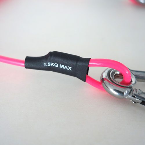 Notre cordon à spirale est conforme à la réglementation FME, reconnaissable par sa couleur fuchsia. Le poids maximal recommandé est imprimé sur le cordon, couvrant la plupart des outils jusqu’à 4 kg.