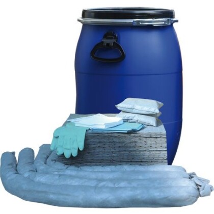 | Composition | • 1 sac de transport nylon • 1 fût P.E.H.D à ouverture totale 120 litres • 75 feuilles (C)* ou 150 feuilles (NT)* 40 x 50 cm • 4 boudins Ø 8 x 120 cm • 2 coussins 40 x 40 cm • 1 paire de gants de protections • 1 paire de lunettes protectrices • 10 essuyeurs • 2 sacs de récupération • 1 notice d’utilisation | ||