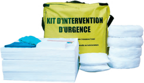 | Composition | • 1 sac de transport nylon • 1 sac de transport nylon • 50 feuilles 40 x 50 cm • 4 boudins Ø 8 x 120 cm • 2 coussins 20 x 20 cm • 1 paire de gants de protection • 10 essuyeurs • 2 sacs de récupération • 1 notice d’utilisation | ||