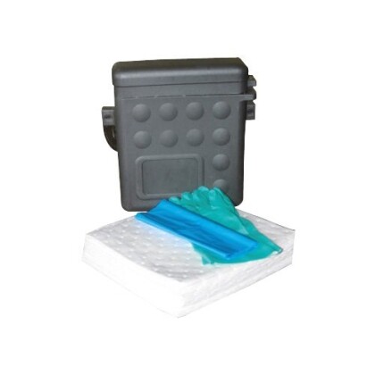 | Composition | • 1 coffre carré (Dim. L 280 x l 85 x h 330 mm) • 15 feuilles 30 x 30 cm • 1 paire de gants de protection nitrile • 1 paire de lunettes protectrices • 1 lampe torche waterproof (piles fournies) • 1 gilet de signalisation jaune fluo (norme européenne) • 1 sac de récupération |