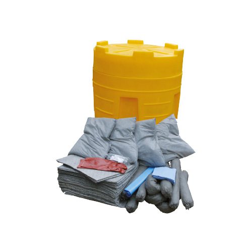 | Composition | • 1 surfût P.E 250 litres (Dim. Ø 780 x h 1010 mm - Fond Ø 630 mm) • 100 feuilles (C)* ou 200 feuilles (NT)* 40 x 50 cm • 24 boudins Ø 8 x 120 cm • 8 coussins 40 x 40 cm • 1 paire de gants de protection • 1 paire de lunettes protectrices • 10 essuyeurs • 5 sacs de récupération | ||