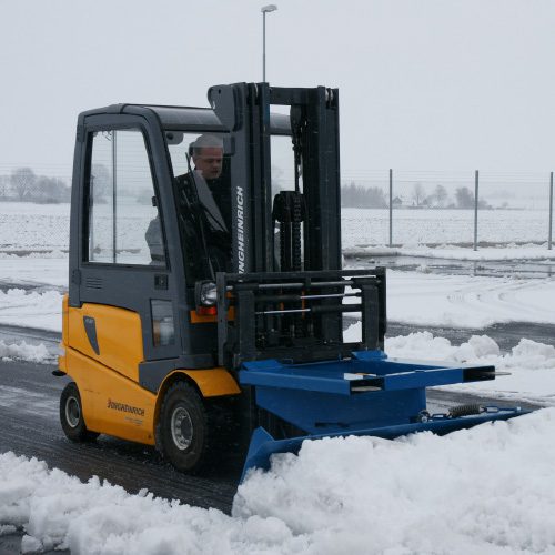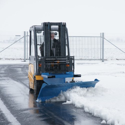 Lame chasse-neige robuste en tôle d’acier 8 mm, équipée d’un mécanisme à ressort et d’un verrouillage des fourches. Celui-ci permet à la lame de se rétracter en cas de collision et ainsi limiter les dégâts sur le matériel et sur le lieu d’intervention.