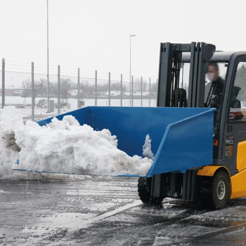 Pelle à neige puissante pour gerbeur conçue pour le déplacement et le nettoyage de la neige, du gravier, de la sciure, des déchets, etc.
