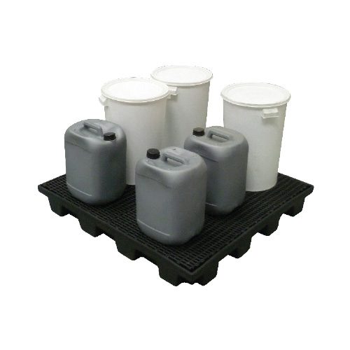 La plate-forme de rétention en polyéthylène recyclé est insensible à la corrosion et aux U.V. Sa texture antidérapante évite le glissement des contenants.