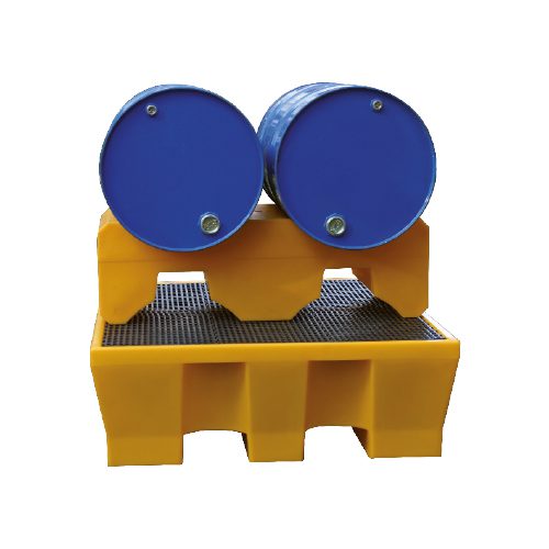 Support polyéthylène pour 2 fûts (PE ou plastique) rotomoulé monobloc pour le stockage sécurisé de 2 fûts métalliques de 220 litres.