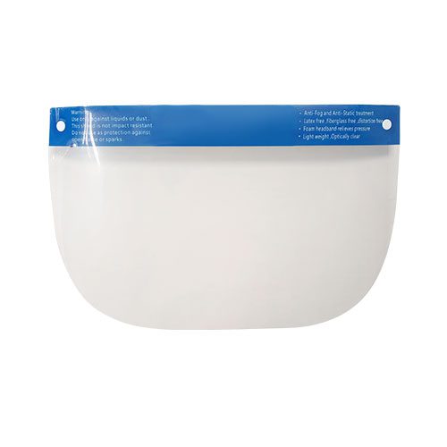 La visière de protection est un écran en plastique semi-rigide transparent qui se maintient au niveau du front grâce à un élastique. Un bandeau de mousse rend le port de la visière de protection confortable et évite les irritations sur la peau. Un film plastique jetable recouvre la visière et est à enlever avant son utilisation.